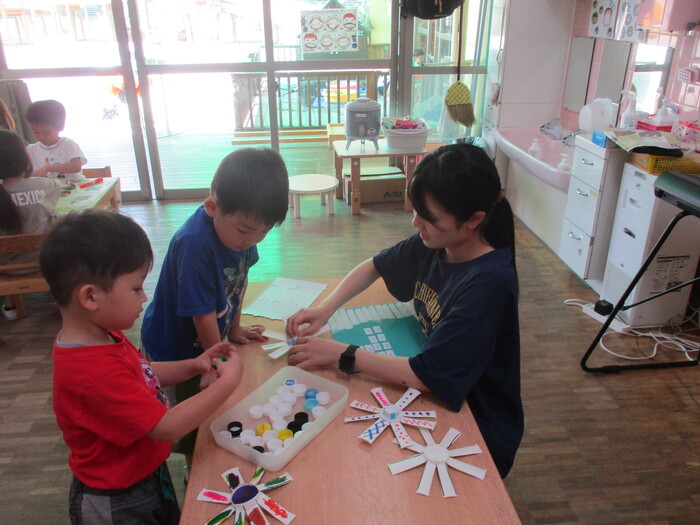 8月1日(木) 制作活動 (こま作り) ~ うさぎぐみ ~ | ||