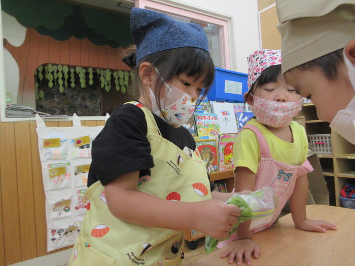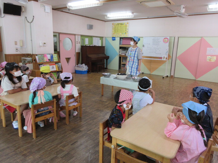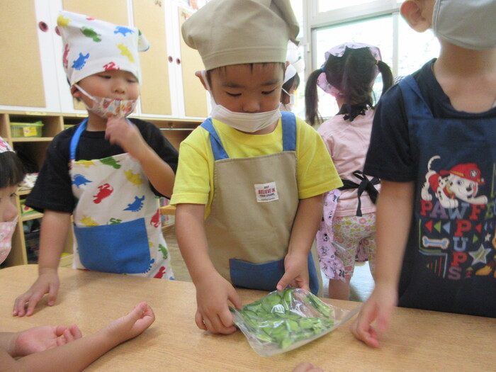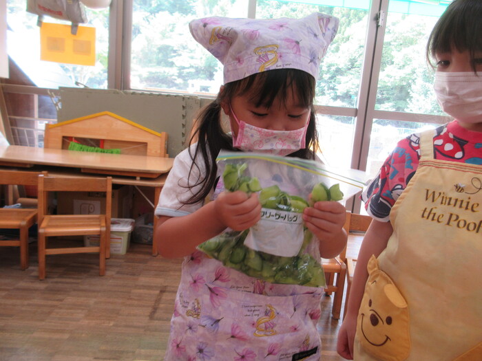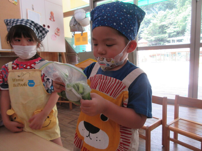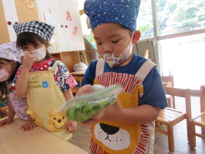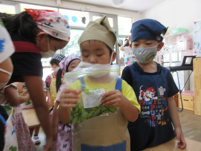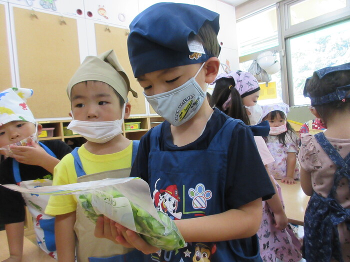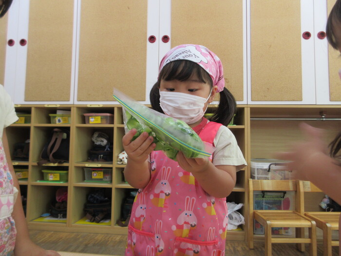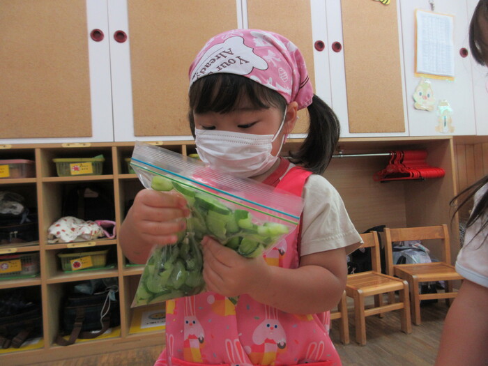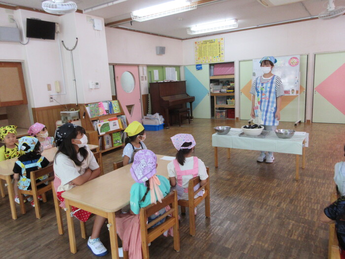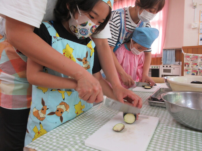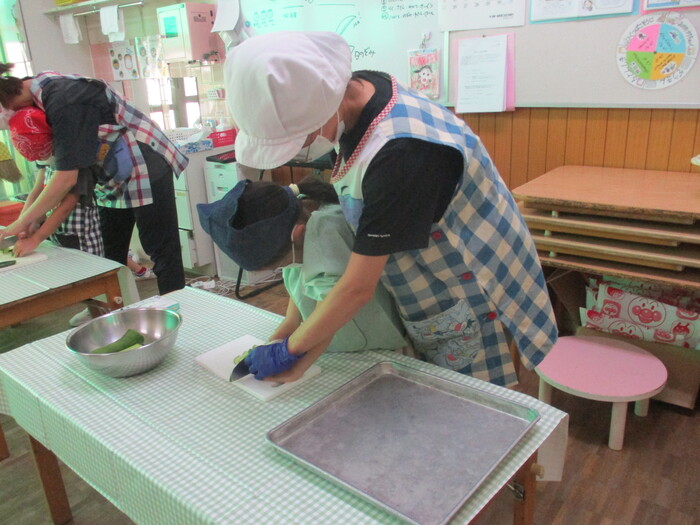 8月9日(金) クッキング (キュウリの塩もみ・ナスのカット) ~ うさぎぐみ ~ | ||