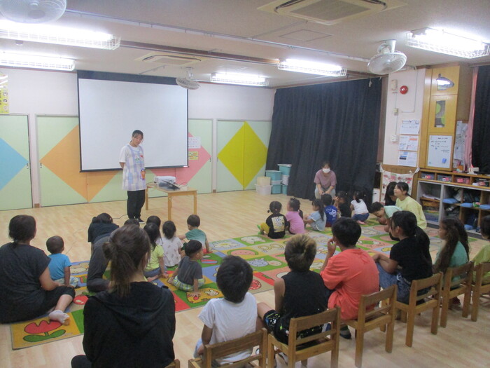 8月14日(水) 交通安全教室 「DVDうを通して交通ルールを学ぶ」 ~ 幼児クラス+こあらぐみ ~ | ||