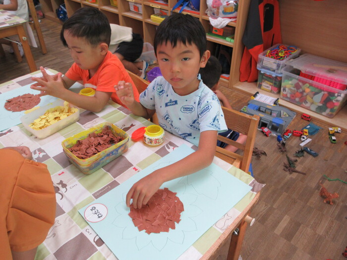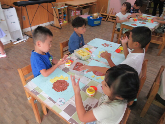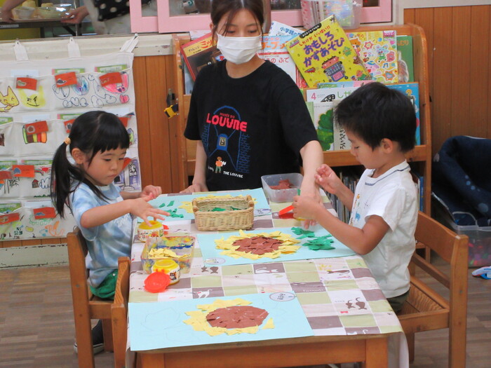 8月21日(木) 制作活動 「ひまわり」 ~ うさぎぐみ ~ | ||