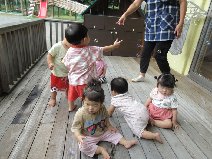 8月20日(火) シャボン玉遊び ~ ひよこぐみ ~ | ||