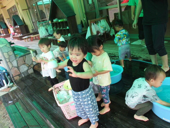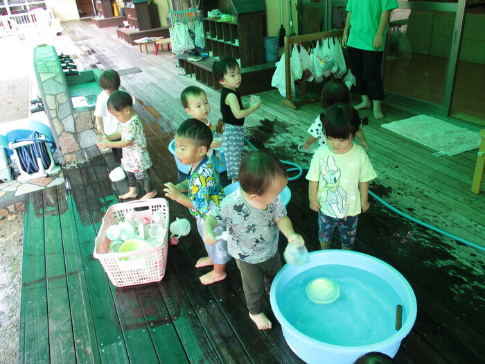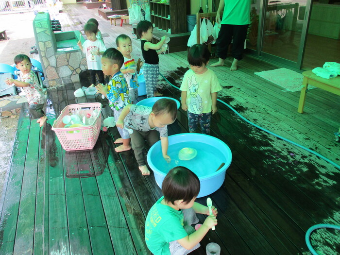 8月28日(水) 水遊び (テラスにて) ~ ことりぐみ ~ | ||