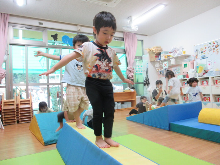10月3日(金) 組体操練習 (美山小学校体育館にて) ~ きりんぐみ ~ | ||