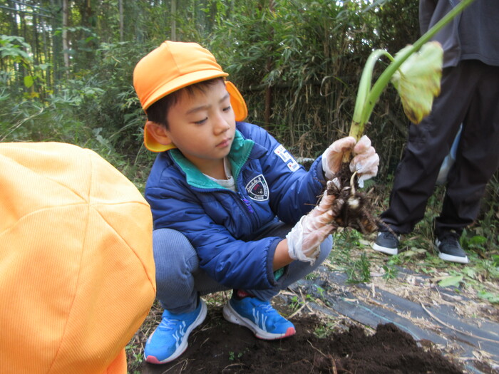 10月30日(木) 里芋掘り (美山小学校裏の畑にて) ~ きりんぐみ ~ | ||