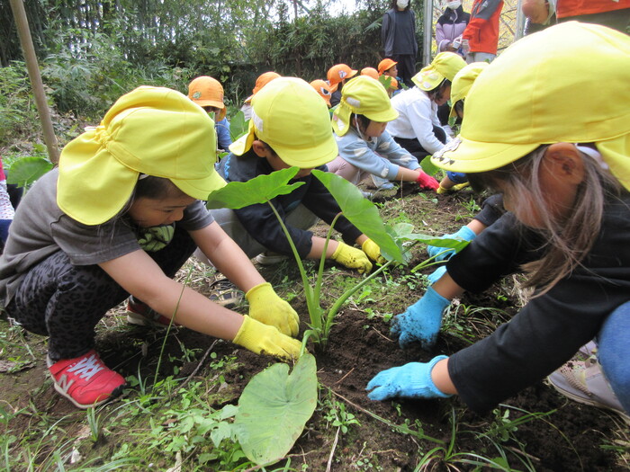 10月30日(木) 里芋掘り (美山小学校裏の畑にて) ~ うさぎぐみ ~ | ||