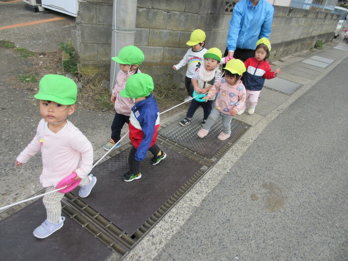 こども園の近くの公園へ初めてのお散歩へ🍂 大きなトラックを見つけたりいつもと違った場所に 大興奮な子どもたちでした☆ 何事もやってみたい!と思う気持ちが育ち 自分でお支度をしたりお片づけをしたり できることがどんどん増えてきています🔥 | ||