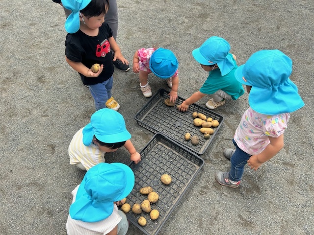 さくらくみさんが掘ったじゃがいもに興味津々です!!