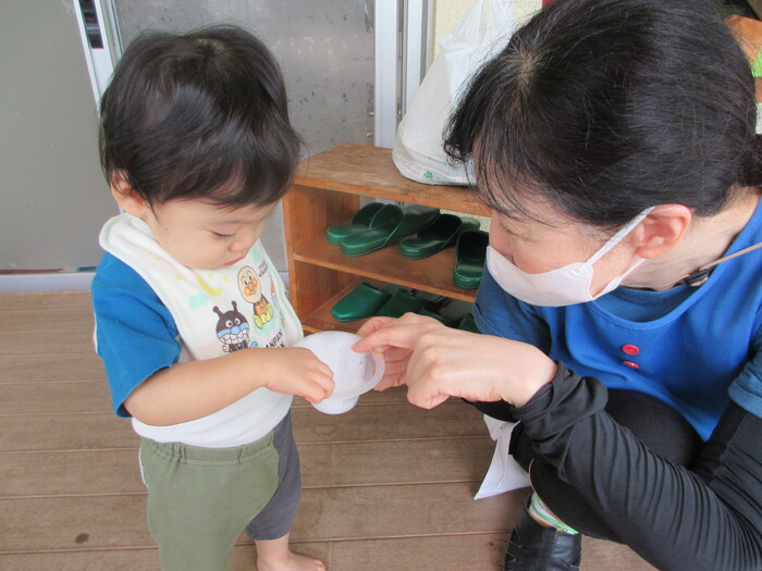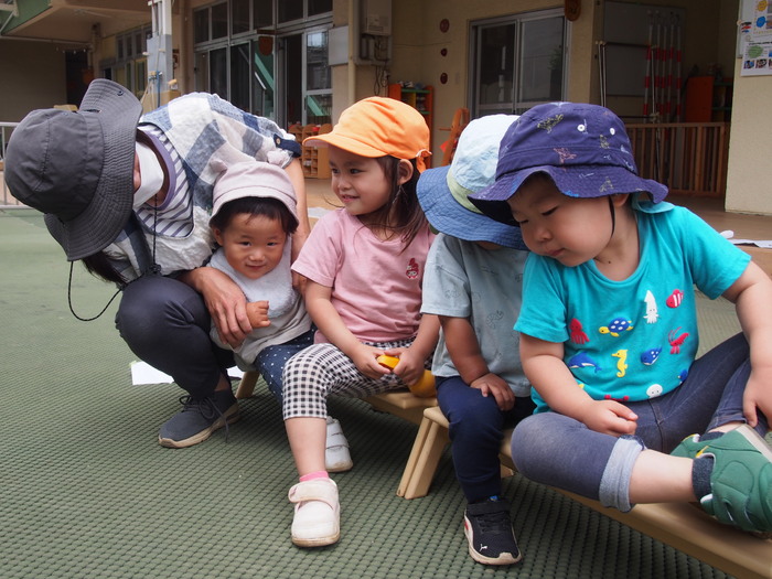 Q:武蔵村山育成会または大南つぼみ保育園で働いていてうれしかったことは? 保育士O先生:子どもたちや保護者、職員同士と様々なエピソードがありますが、 どんなことも最後は笑顔を見ることができた時が1番うれしかったことです。 保育士M先生:子どもたちが朝、笑顔で登園してきてくれる姿を見るとうれしく思 います。 保育士A先生:ゆったりとした保育の中で、子どもたちのたくさんのかわいい笑 顔に出会えることがうれしいです。 保育士S先生:武蔵村山育成会全体が常に子ども、保護者、職員、地域と向き合い ながら前に向かって進んでいく姿勢があり、その一員として働けることがうれしい です。 栄養士O先生:子どもが顔を覚えてくれたこと 抱っこを求めてくれたこと 自分の手で給食を食べてくれたこと | ||