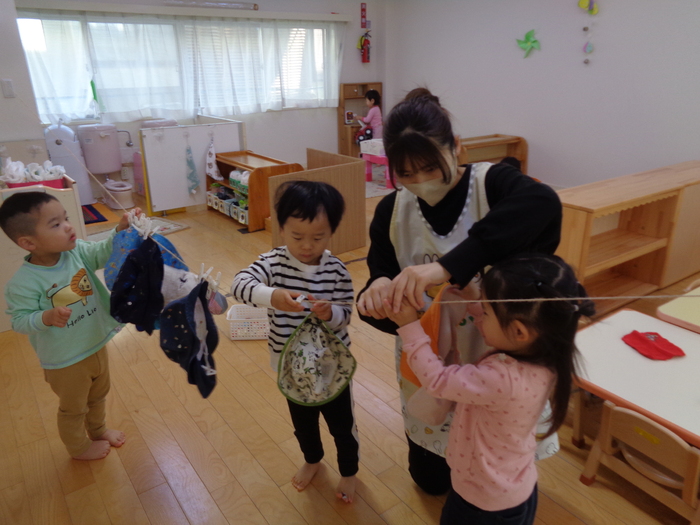 Q:仕事する上で大切にしていることは? 保育士O先生:仕事・保育をするうえで「笑顔で一緒に仕事をする、子どもたちと 過ごすこと」を大切にしています。笑顔がある環境、コミュニケーションを図れる 雰囲気の良い(人的)環境の中で子どもたちが心も体も大きく成長していってほし いと思うからです。 保育士M先生:子どもたち、保護者、職員、みんなが笑顔で過ごせること 保育士A先生:スマイル☺!!笑顔でいろんなことにチャレンジ! 保育士S先生:視線をしっかり合わせ、気持ちを受け止め、伝えること 栄養士O先生:コミュニケーション、連携を大切にしています。 | ||