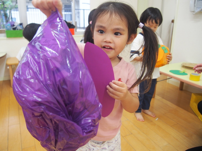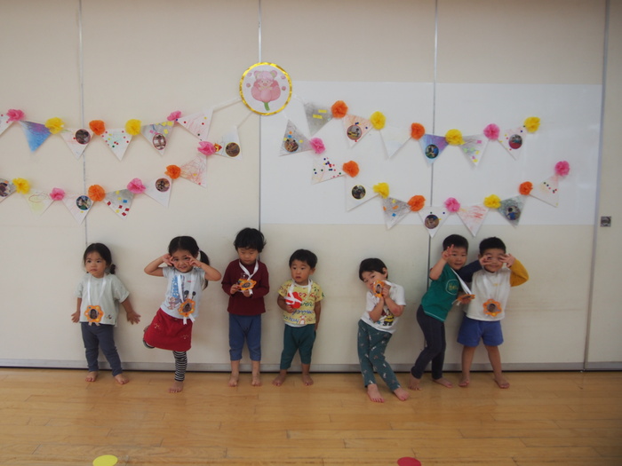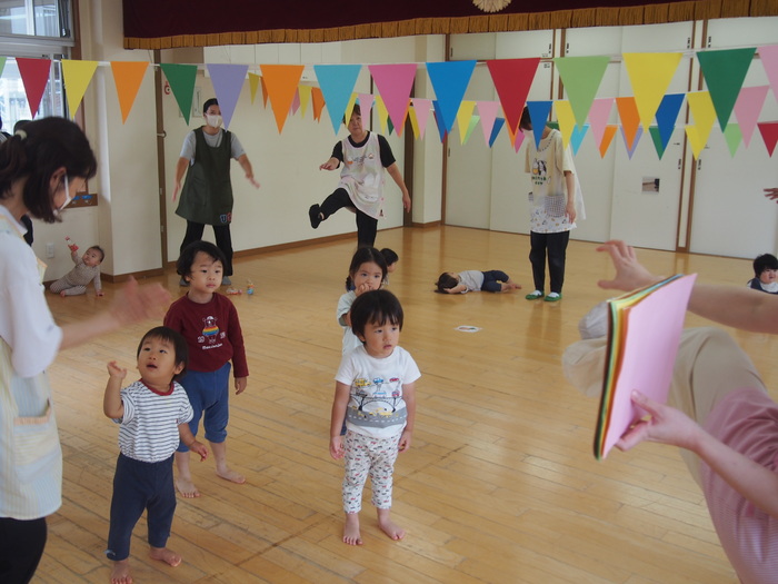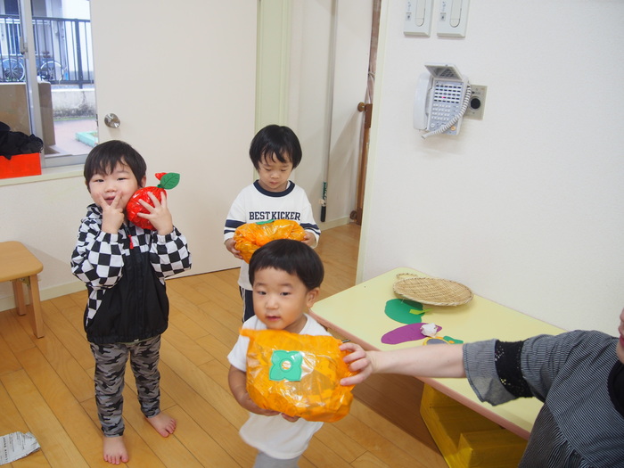 10月は運動会ごっこに向けて、リズム遊びや、運動遊びをたくさん楽しみました!!これから秋もぐっと深まってくる季節になるので、お散歩に出掛けるなどして、沢山の秋を見つけていきたいと思います。 | ||