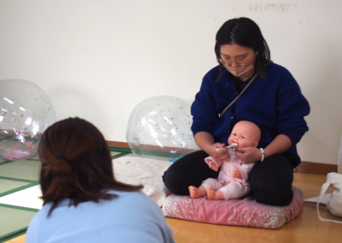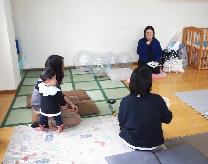 11月13日(木)のなないろひろばは、武蔵村山市内で「あそビリぼー場」など、子育て応援の取り組みをされている理学療法士 加藤未来先生に「お口育て」についてお話をしていただきました | ||