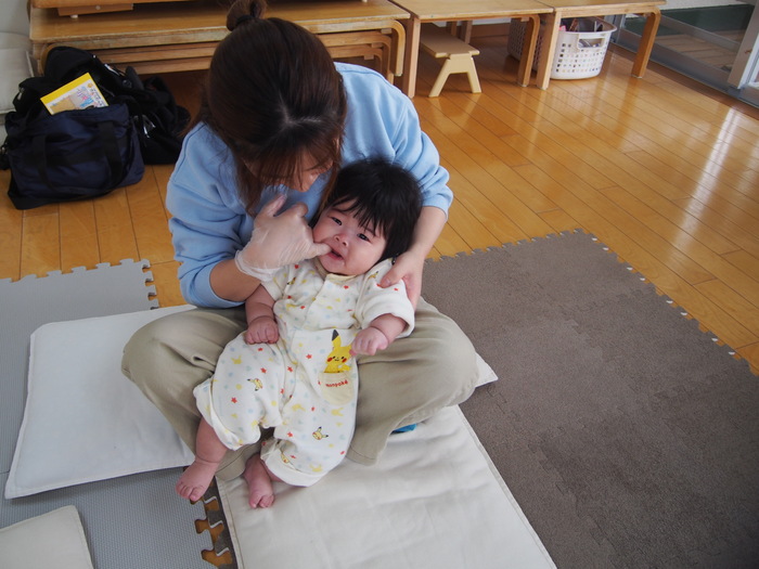 お口のケアについて お口のケアはよだれとも関係が深いそうです よだれがいつでるかと言うことがポイント! 「ご飯の準備、できたよ~」と言うとよだれが出るほうが望ましいそうです よだれが出ないとゴックンと食べ物を上手く飲み込めず、オエッと詰まらせてしまいそうになってしまうこともあります どうやってよだれを出せばいいの? | ||