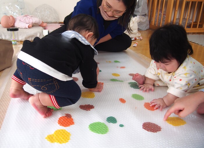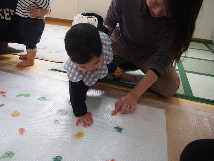 他にも、離乳食・食事について(水分・食べ方・離乳食の形態など)や座り方についてなどここに書ききれないほどのたくさんの良いお話がありました 今回、教えていただいた遊びはほんの一例です 絵具遊び・ボール遊びなど1つの遊びが、心・体・脳など様々な形でお子さんの経験・成長につながっていくんですね 「遊び」を難しく考えず、お子さんの成長に合わせて、お母さまも「楽しい!」と思えることをお子さんと一緒にすることが一番の成長につながるのではないかと思います お母さま方の悩み・不安が晴れたようで帰る時には、すっきりとした笑顔でした ご参加、ありがとうございました✨ | ||