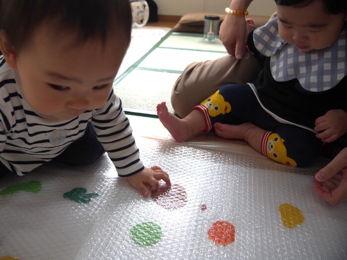 嫌だったからと言ってやめる・なくすのではなく「いやだったね~」など声を掛けながら、触れたり・やめたりを遊びの中で繰り返してみましょう(無理強いはしないでくださいね) 苦手か苦手じゃないかを「自分で考える」という成長に繋がっていきます | ||