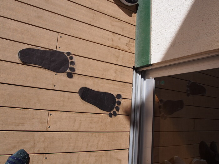 集会をしている部屋の前にも大きな足跡が!!! こ、こ、こっ これはもしかしたら~!!! | ||