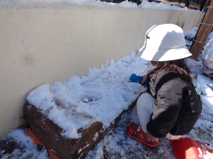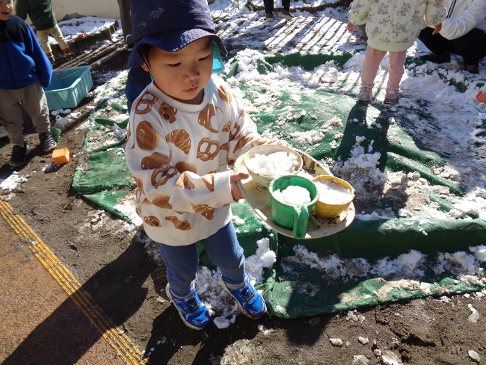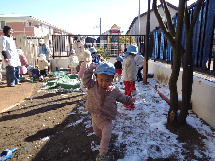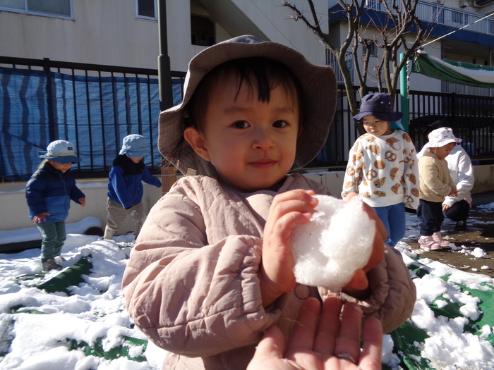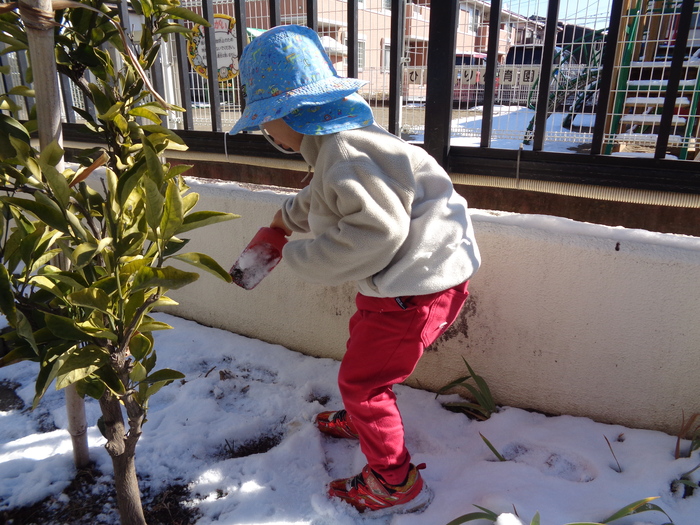 春の訪れを待っていた所に、大喜びの雪が!!! 雪遊びを楽しむつぼみキッズです❅ | ||
