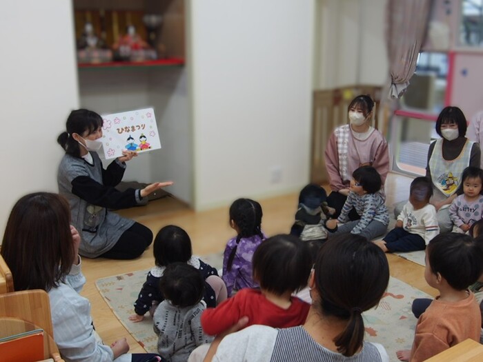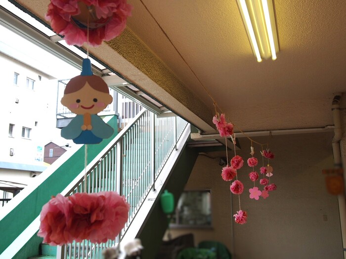 3月3日はひな祭り🎎 寒い日が続きましたが、つぼみ保育園の中は桜でいっぱい!もうすっかり春の気分です☆ | ||