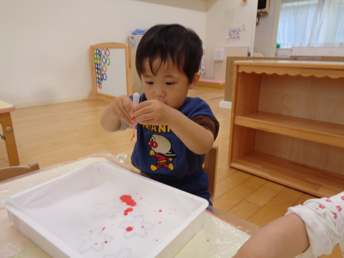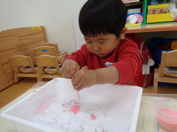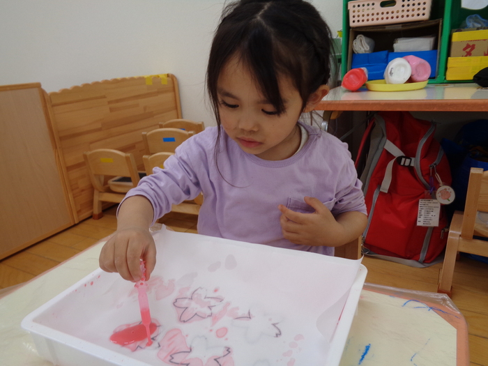 スポイトを使ってにじみ絵 滲んだ紙の先には桜が登場! | ||