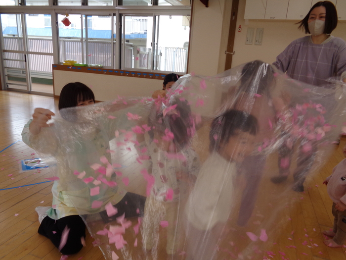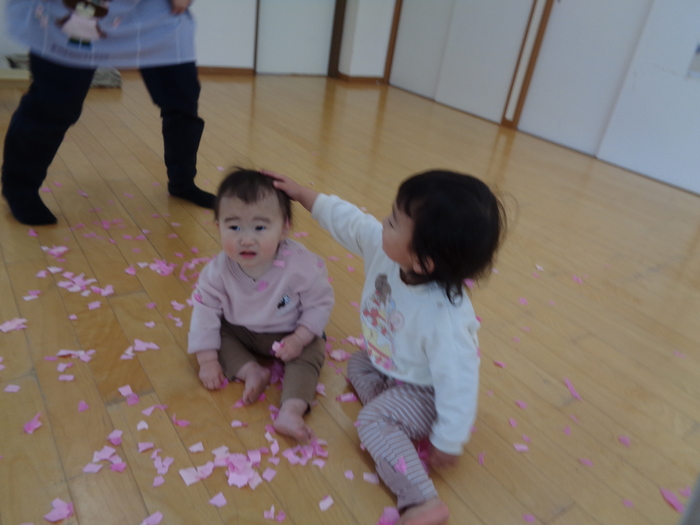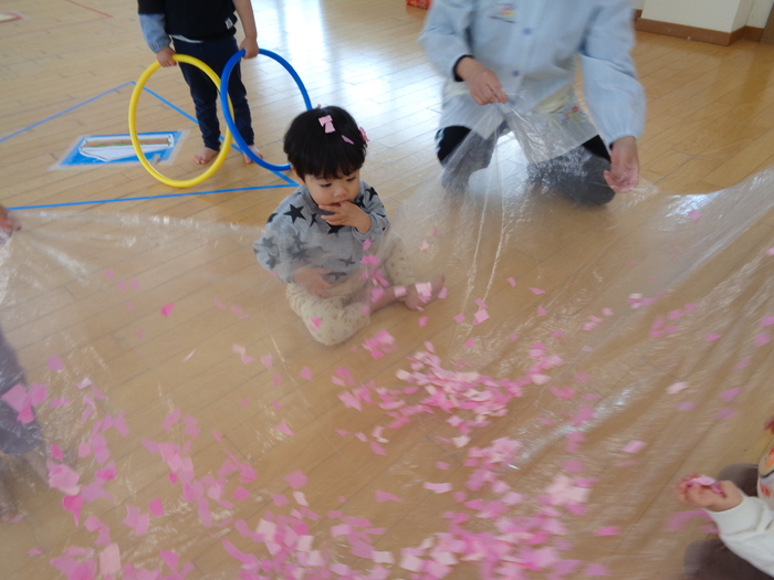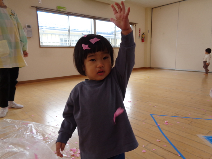 ホールで桜の花びらあそび♪ | ||