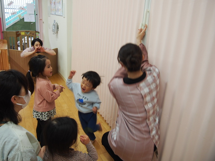 日中はお楽しみ活動! つぼみキッズの大好きな絵本「おばけちゃんとかくれんぼ」を題材にしたおばけ探しを行いました | ||