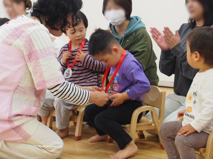 入園当初は泣いていたつぼみキッズも、今では笑顔で登園してくれるようになりました 色々なことが出来るようになり心も体も大きく成長しましたね つぼみキッズと過ごした日々は、私たち保育者にとっての一生の宝物です☆ 楽しい毎日とたくさんの思い出をありがとう♡ 保護者の皆様も温かいご支援とご協力をありがとうございました この先も新たな場所で色々な経験をして、つぼみキッズが大きな花を咲かせてくれることを願っています🌷 | ||