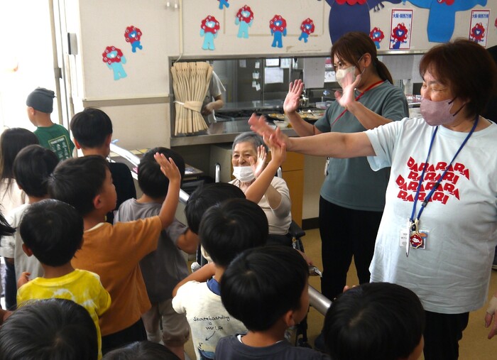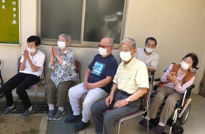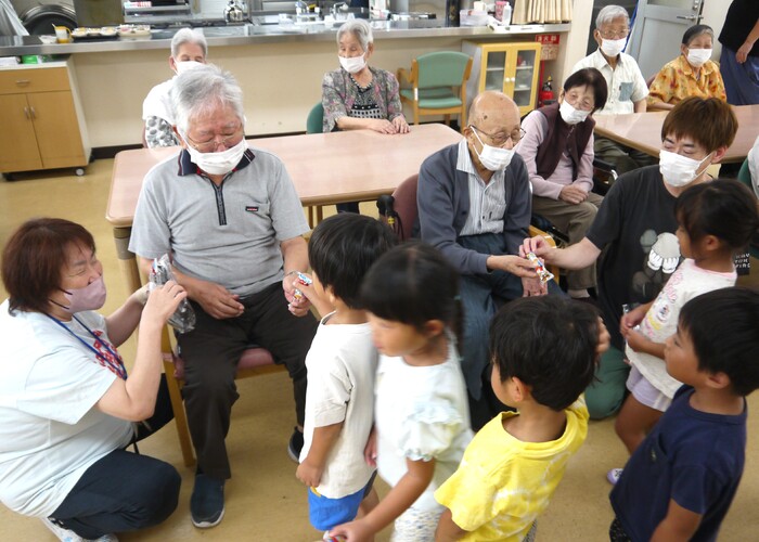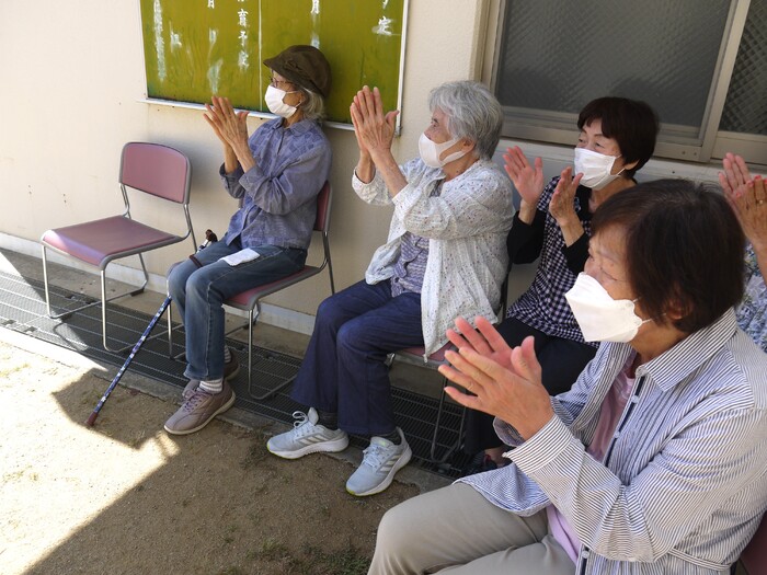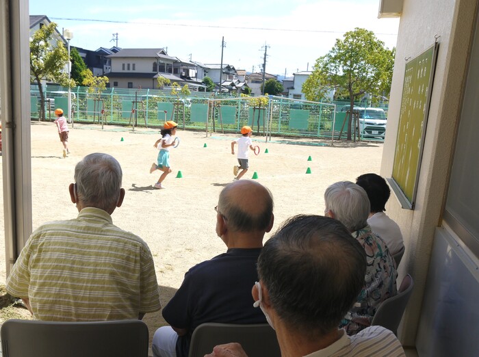 「早いな~」「頑張って~!」とご利用者様も応援されています!子ども達がんばれ~