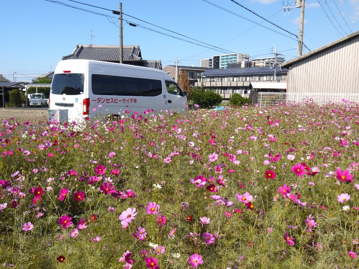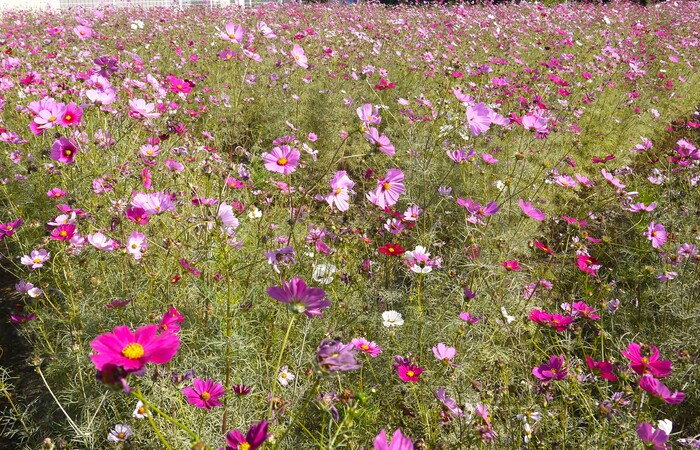 辺り一面にコスモスの花が咲いていて、とってもきれいですね♪