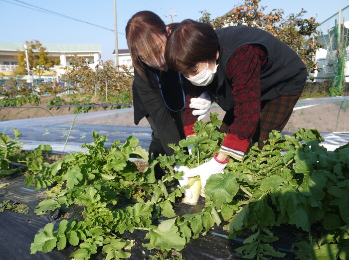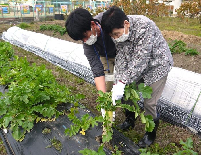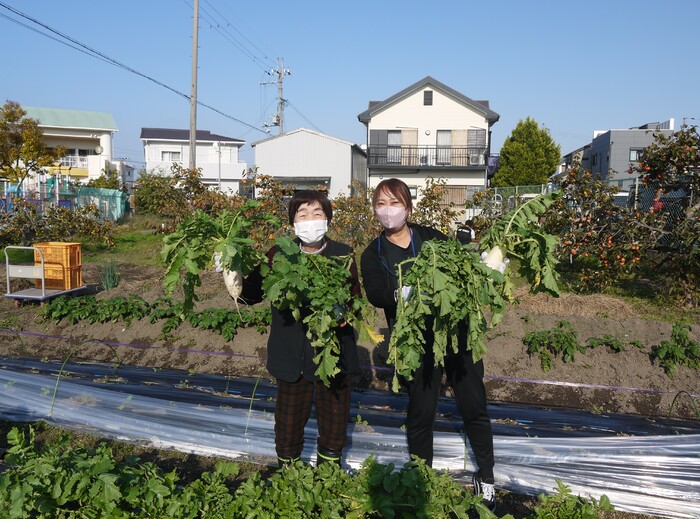 当法人の畑で大根が大きくなってきたので、収穫(大根抜き)しますよ~!