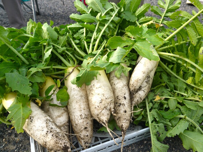 「サラダにしようかな?」「おでんも良いですね」「大根の葉っぱも調理して、美味しく頂きま~す♪」