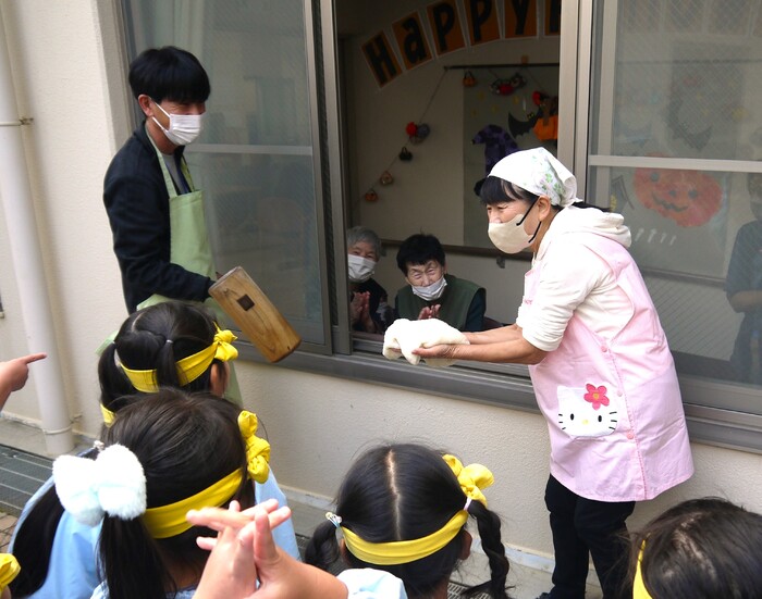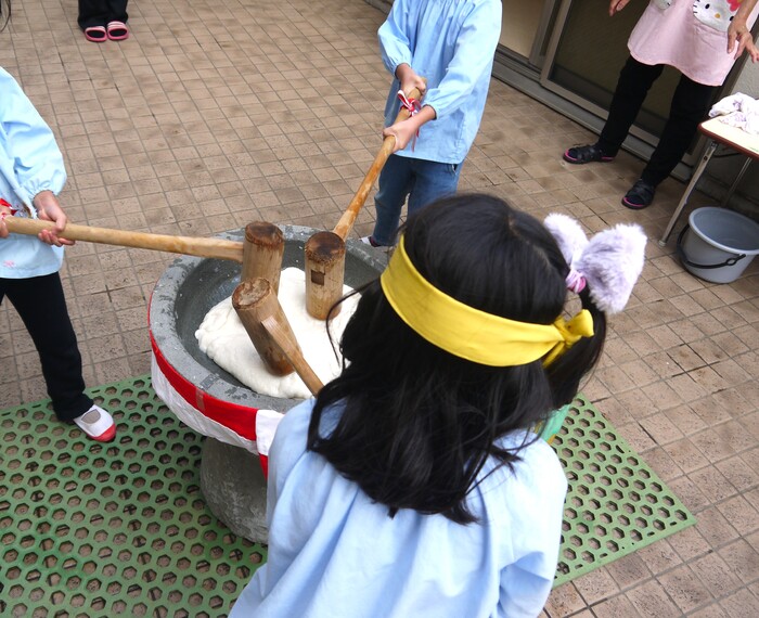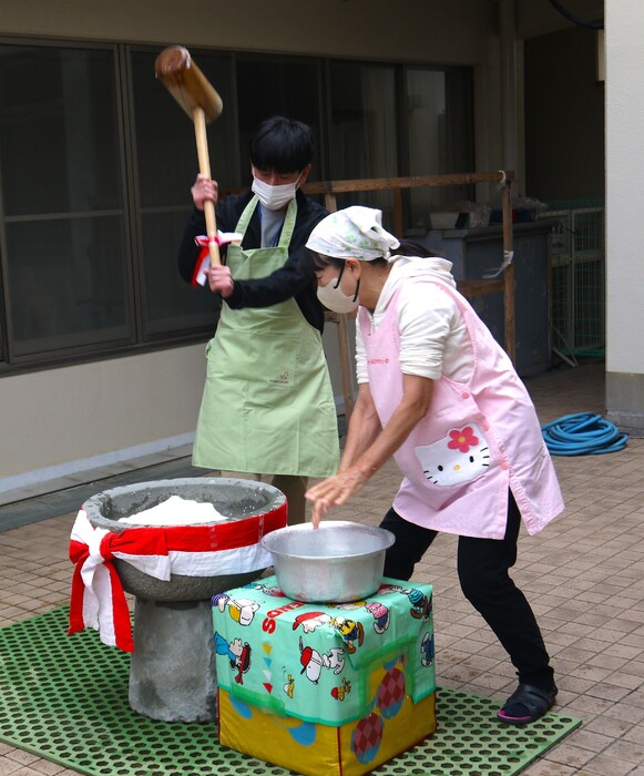 さて、年末恒例の「おもちつき大会」です!頑張りますよ~!