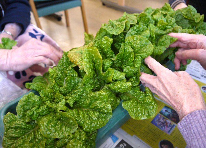 こちらは、中庭で育てている「サラダ菜」です!