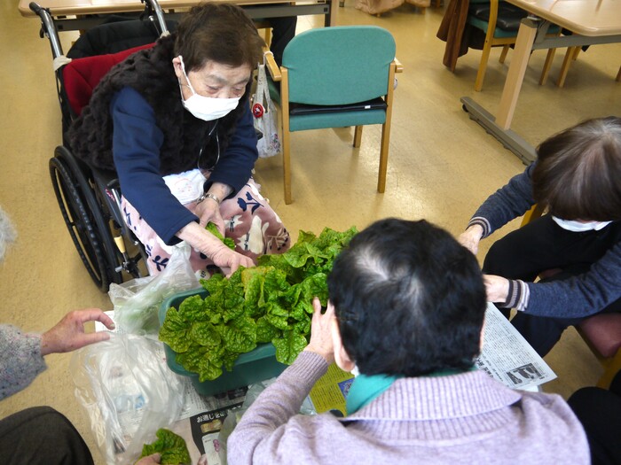 外は寒いので、中で収穫タイム💛「すごい!色々な野菜があるね~!」とご利用者様