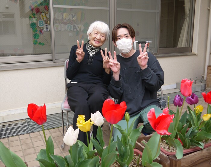 「毎回、デイサービスに来た時に大きくなっているかな?と見るのが楽しみで、花が咲いて嬉しいです」とご利用者様