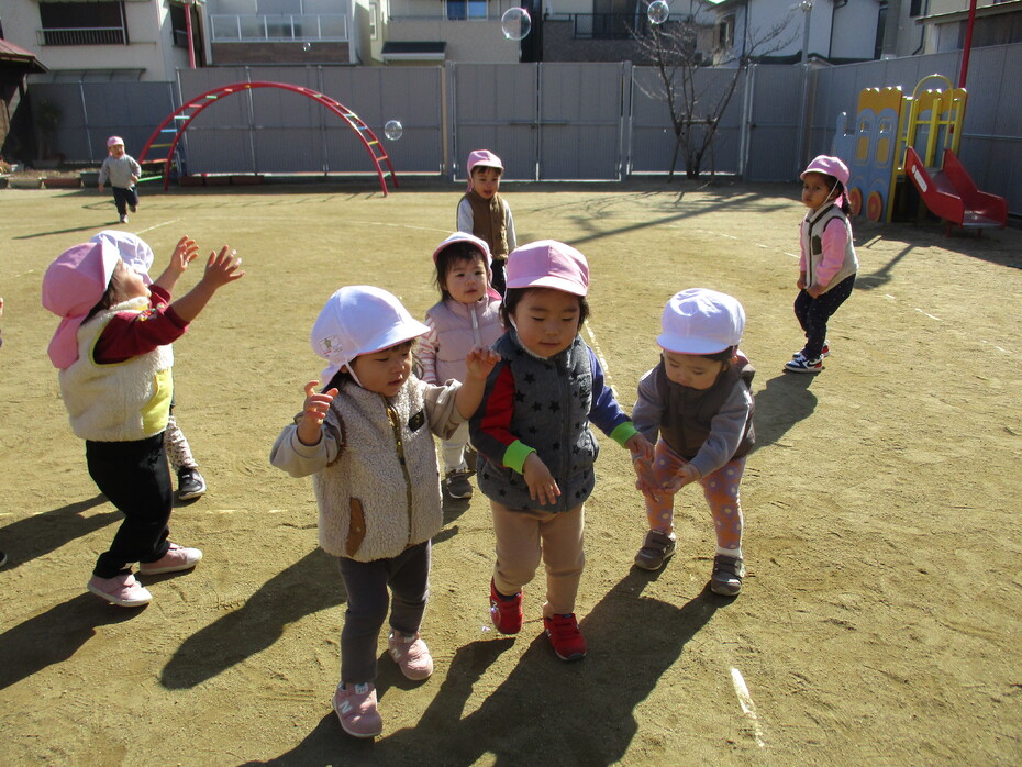 シャボン玉を追いかけています