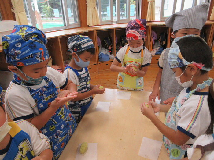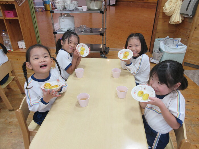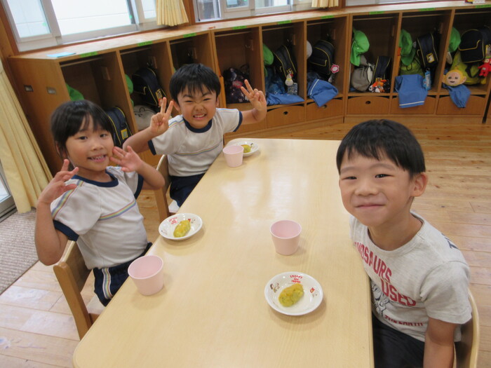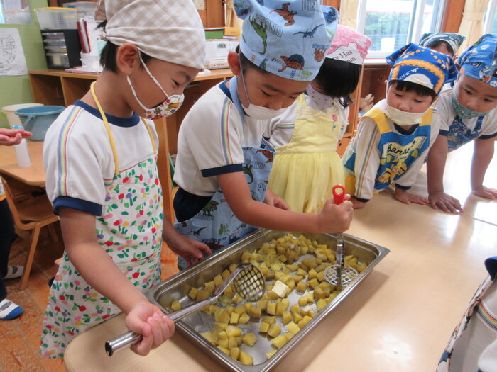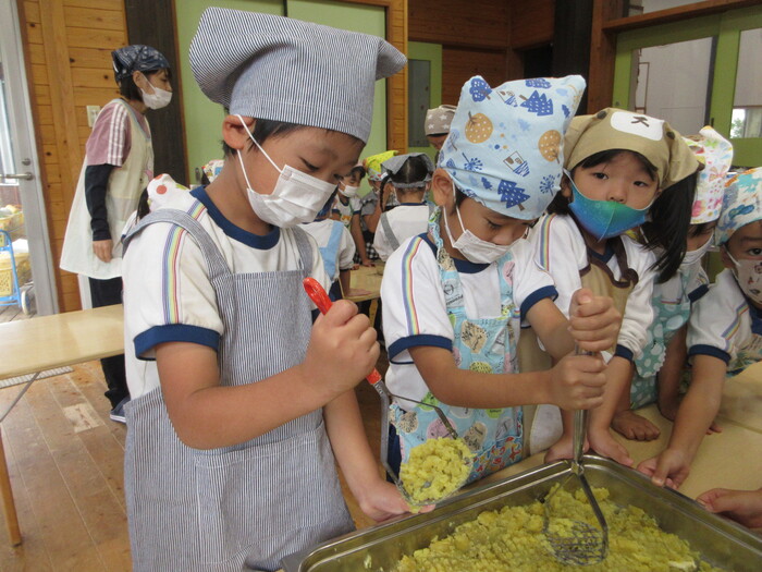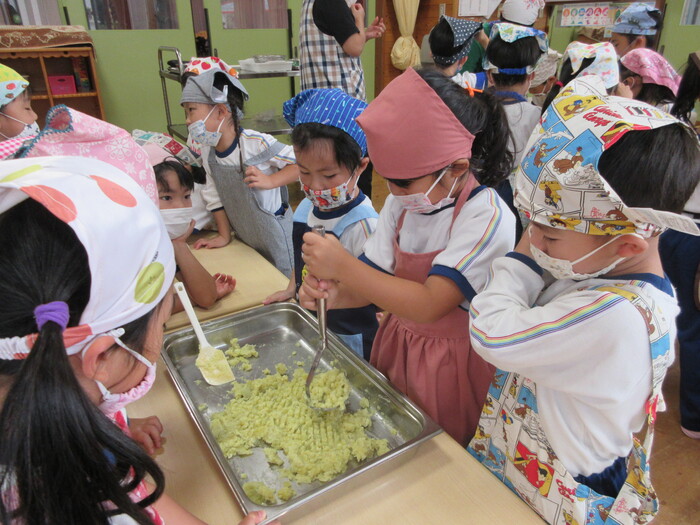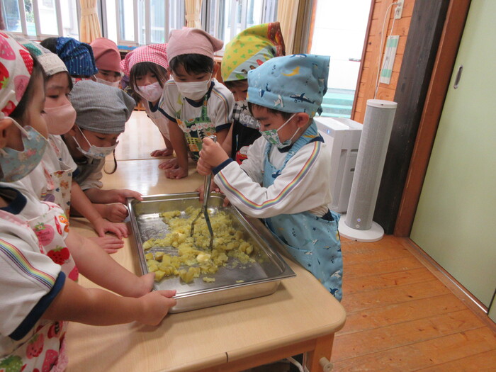 さつま芋をつぶしていくよ!