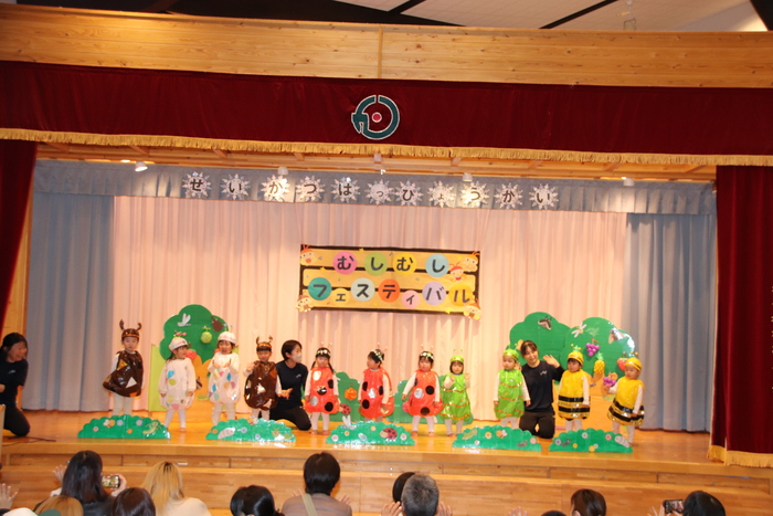 素敵な看板を飾って 「むしむしフェスティバル」開催☆ みんなで楽しくダンス 踊ったよ♡ | ||