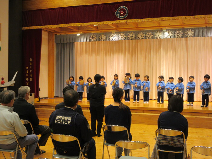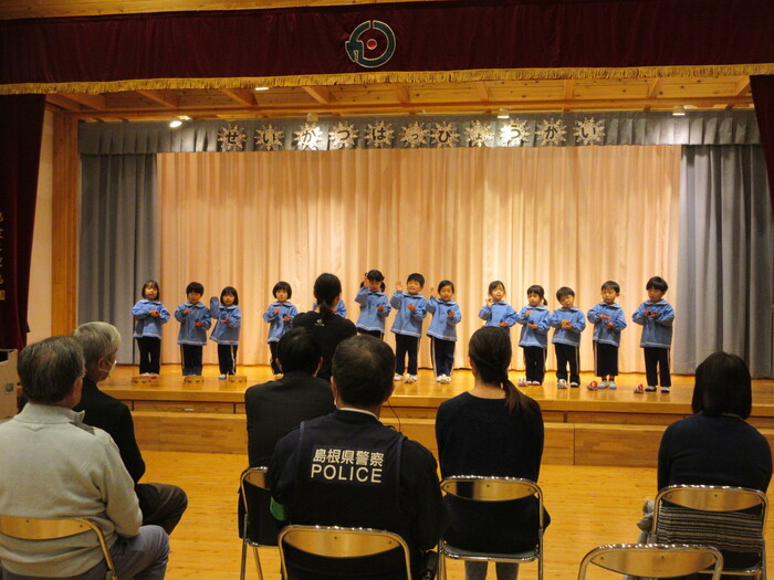 ほしぐみ「線路は続くよどこまでも」 の合唱奏を見ていただきました。 「かわいい!」とのご声援をいただきました。 | ||