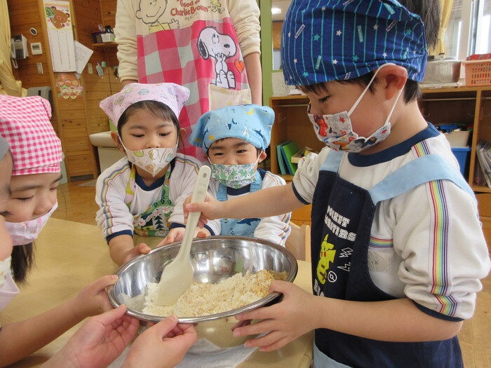 材料を入れて混ぜていくよ!