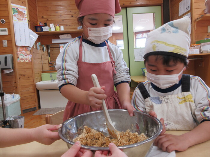 少しずつ生地がまとまってきたね