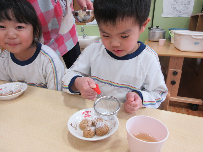 焼きあがったら粉糖をかけました☆