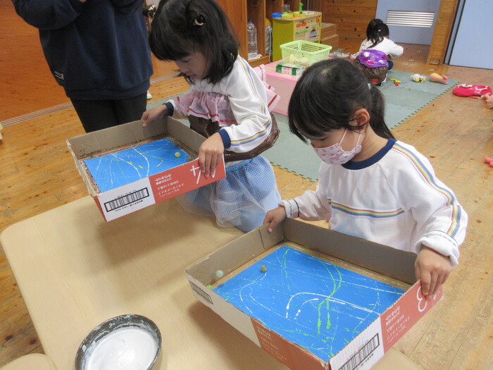 ビー玉を転がして製作をしました☆