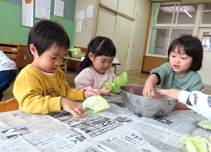 キャベツをちぎったよ!(すみれ組)