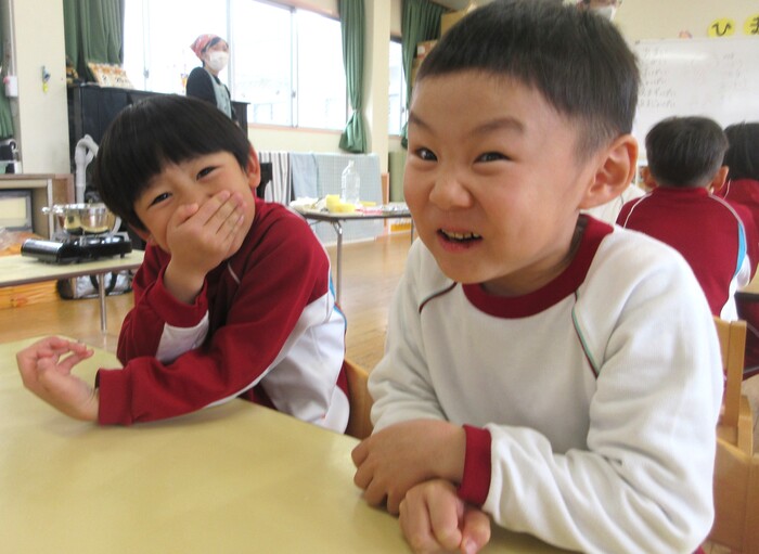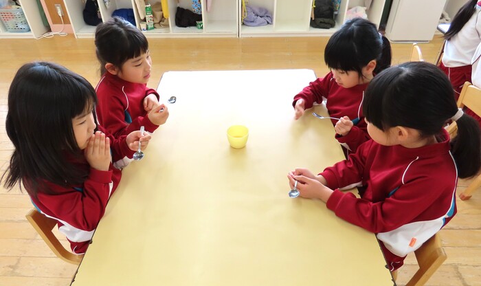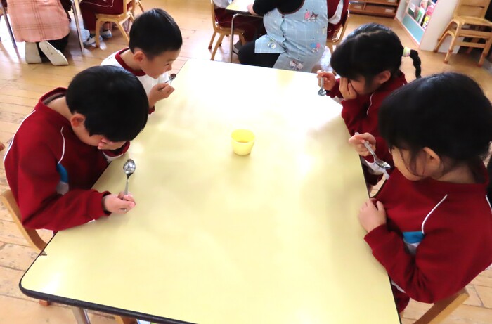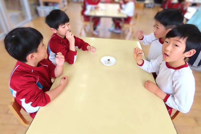 カカオだけを口にすると・・苦そうな顔のひまわり組さんでした。