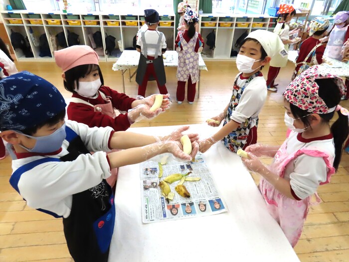 🍌バナナの皮をむいて!