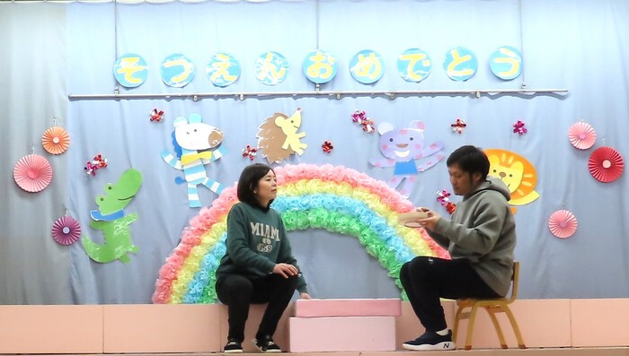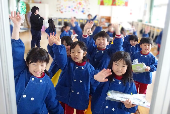 1人ずつ 自分の行く小学校や楽しかったこと、