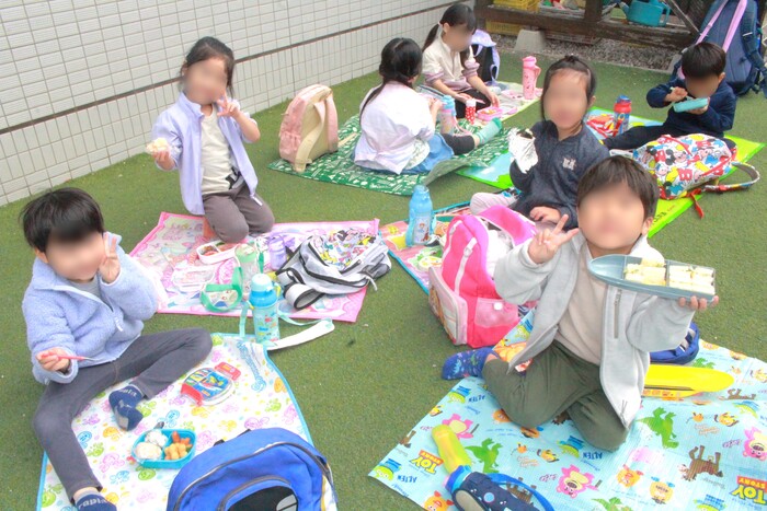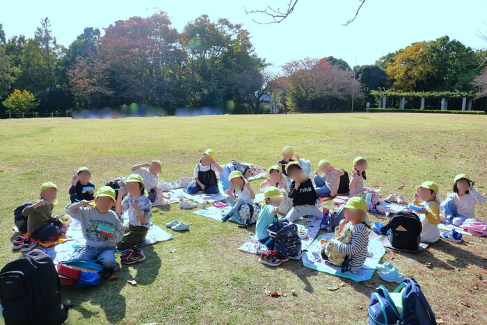 5歳児クラスの子どもたちは長久保公園に行きました☆遠い道のりも、楽しみにしているお弁当とお菓子があれば乗り越えられる!「早くお弁当食べた~い」そんな声があちらこちらか聞こえてきました♡外で食べるお弁当は別格!!あっというまに食べ終わっていました☆