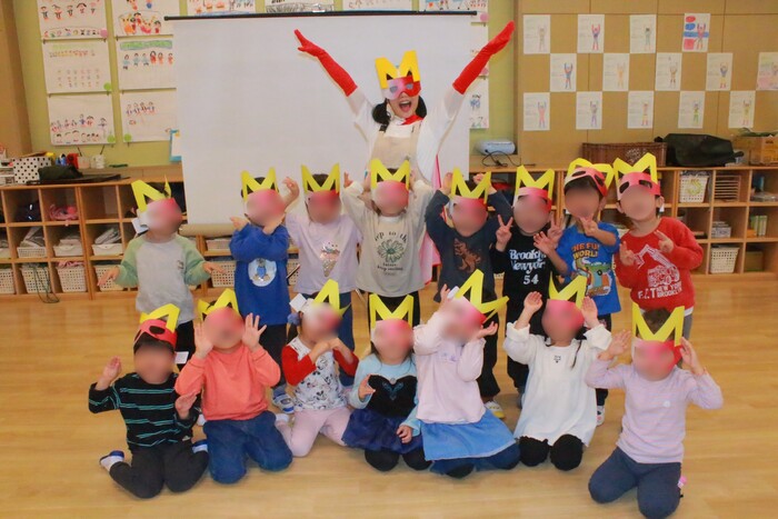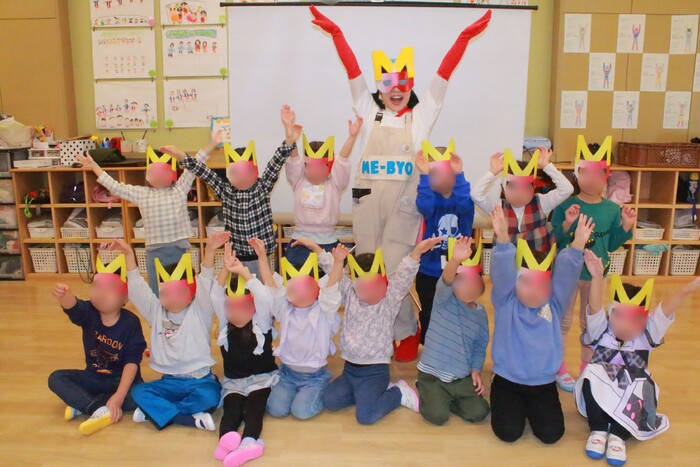 保育園に未病ガールが来てくれました☆ クイズやダンスで大盛り上がりの子ども達。 「ミビョーマンの歌」は事前に練習もしていたのでバッチリ踊れていました☆ 今日の給食は、30回モグモグとよく噛み、いつもよりも野菜をパクパクと食べていた子ども達でした! | ||