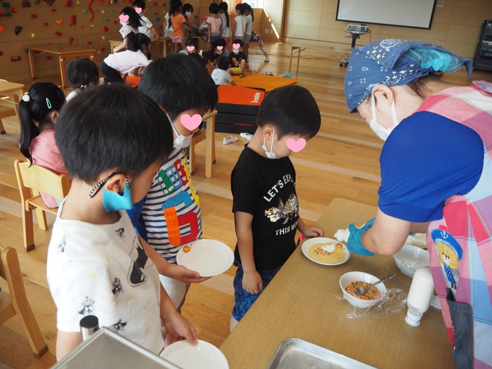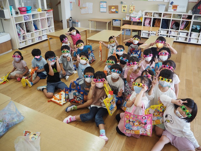 謎解き宝探しゲームや水鉄砲で的当てゲーム、映画鑑賞、ビンゴゲームなど、たくさんの催しに参加して1日楽しく過ごしました。また、給食の先生が作るクレープやポップコーンも大人気でしたよ。
