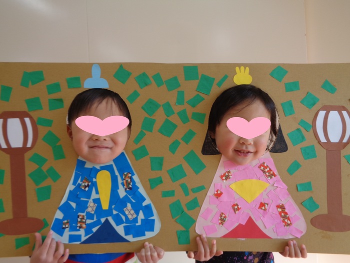 たんぽぽ組(2歳児クラス)可愛いおひな様に変身しました!
