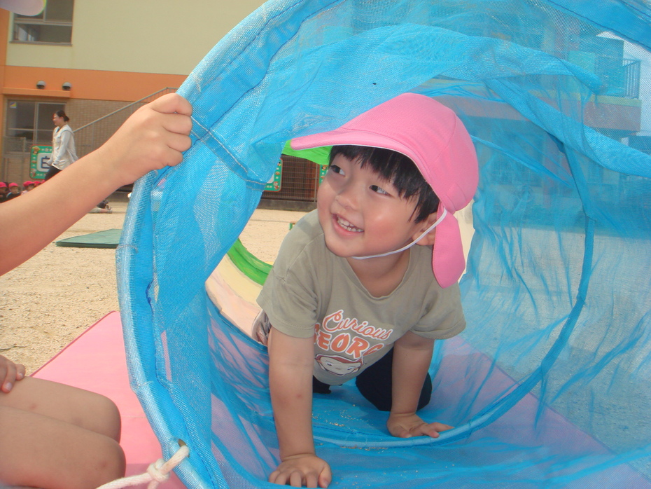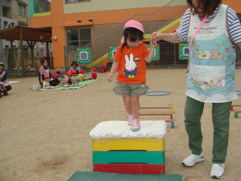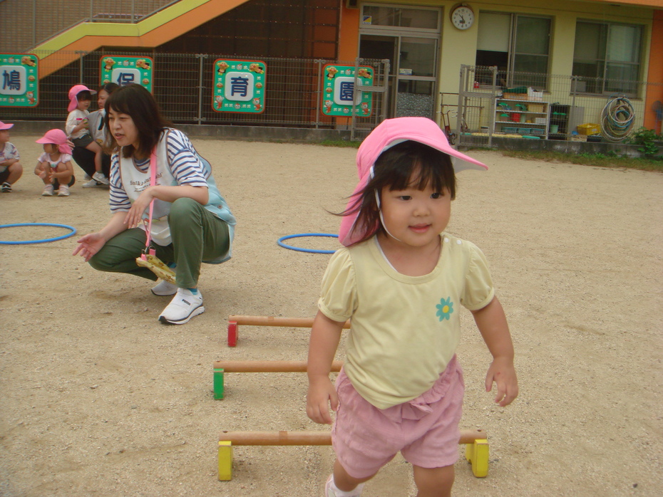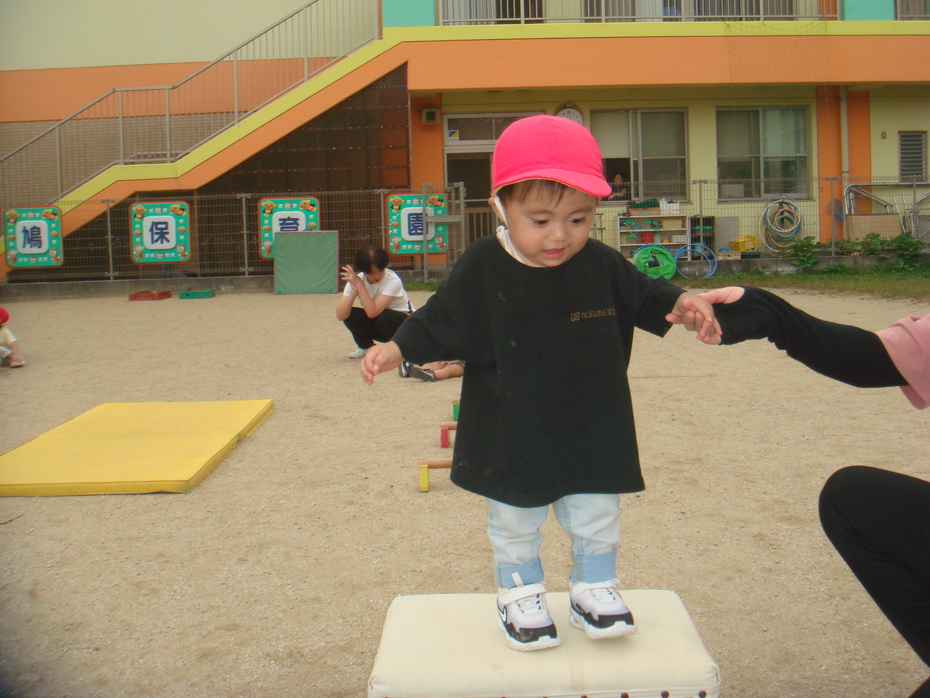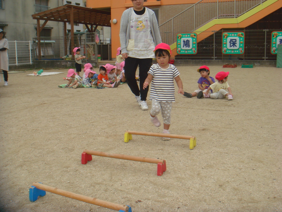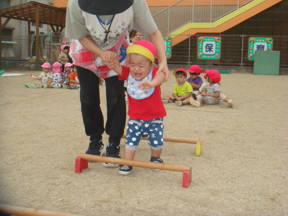 ぞうぐみ・きりんぐみ・ぱんだぐみに応援してもらったり、お手伝いしてもらいながらいろいろな用具や運動に挑戦しました。張り切ってする姿と恥ずかしがってしまう姿といろんな表情を見せていました。 | ||